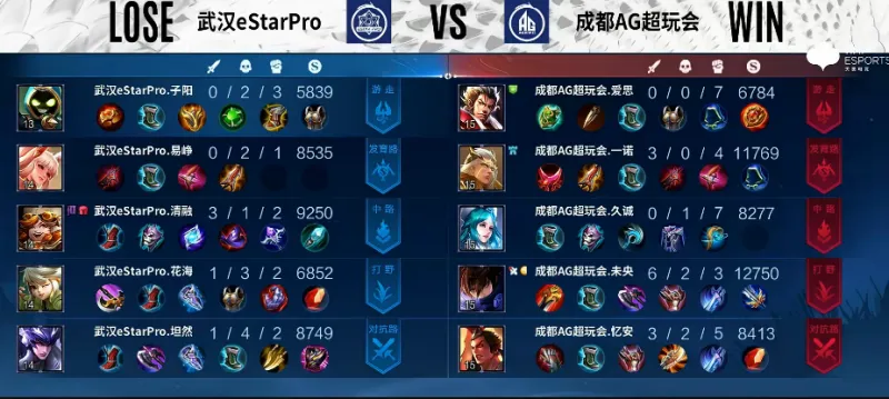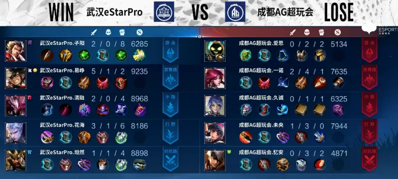 Game5:武汉eStarPro蓝色方,成都AG超玩会红色方