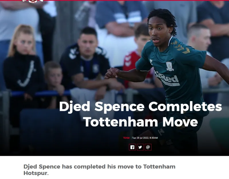 米德尔斯堡官方随后确认了这笔转会。21岁的斯宾瑟在富勒姆开始了自己的青训生涯,2018年7月,17岁的他加盟了米德尔斯堡。