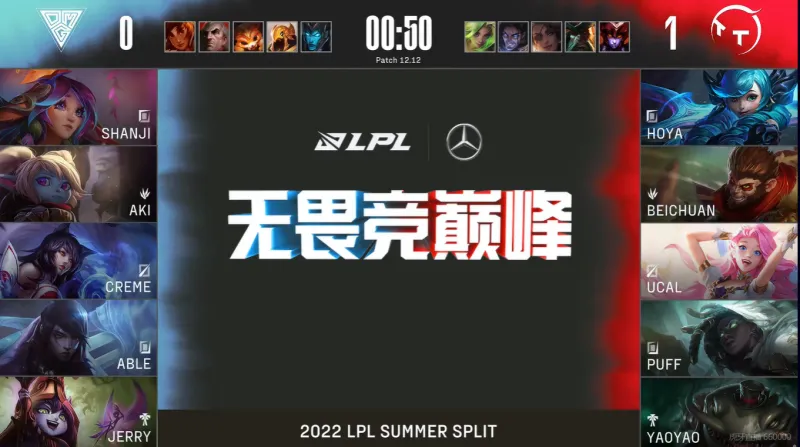 9分钟,峡谷先锋团战一触即发,莉莉娅丝血拉扯,格温先行阵亡,OMG拿下一血。