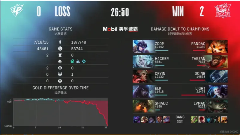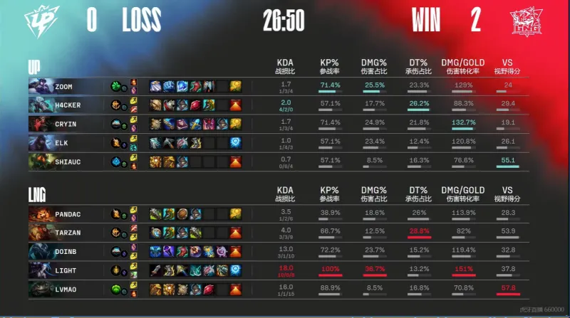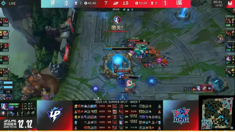 26分钟,乌鸦绕后开团无果,团战UP溃败,LNG一波终结比赛。