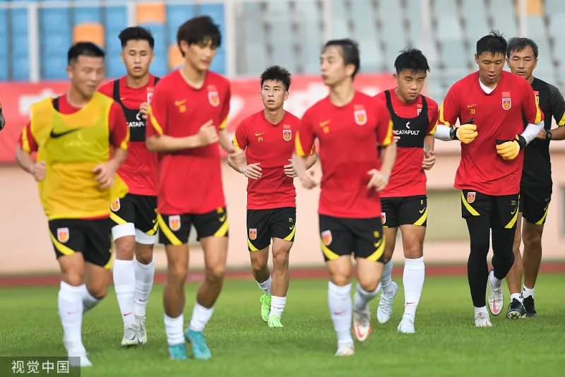 至18时35分,中国队员们陆续从更衣室走出。主教练扬科维奇简单召集大家在一起安排部署了今天的训练内容之后,随即展开了准备活动,围绕着球场跑了小半圈之后,所有人便集中到角球一侧进行抢圈练习。而三名门将则在守门员教练的带领下,前往另一侧球门专门展开专项训练。由于本身适应场地的时间就只有一个小时,所以,在约10分钟的抢圈游戏加准备活动之后,队员们便被一分为二,身穿背心的在一起,三人一组,展开传接球练习;没有穿背心的也是在一起,三人一组,进行同样的科目训练。这个科目也持续差不多10分钟。