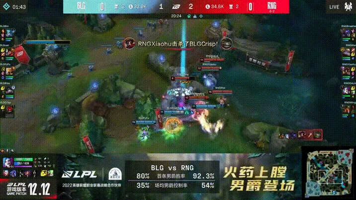 比赛第30分钟RNG带双龙汇推进轻松结束比赛。