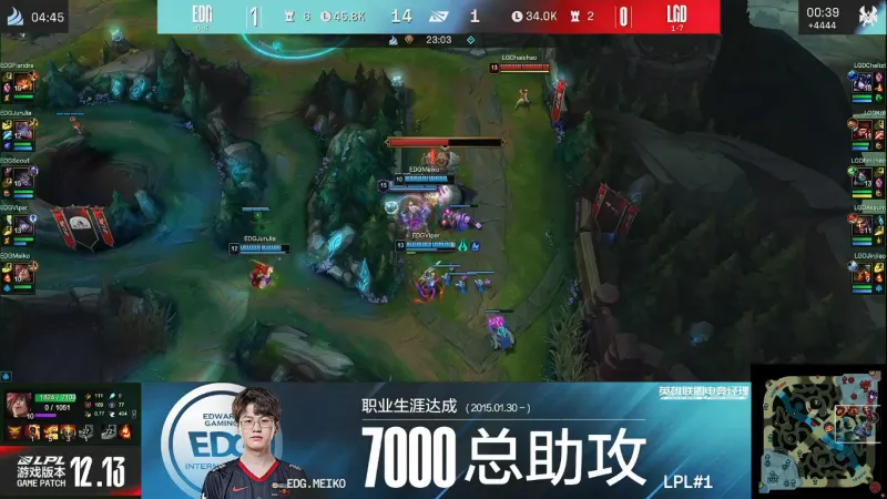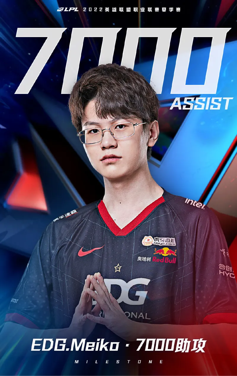 在今日EDG对阵LGD的比赛中,Meiko使用瑟提达成了在LPL的第7000助攻,是LPL第1位达成该成就的选手,恭喜Meiko!