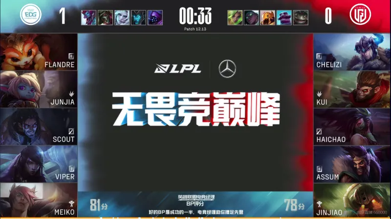 EDG选用:Flandre纳尔、Junjia波比、Scout塞拉斯、Viper厄斐琉斯、Meiko瑟提