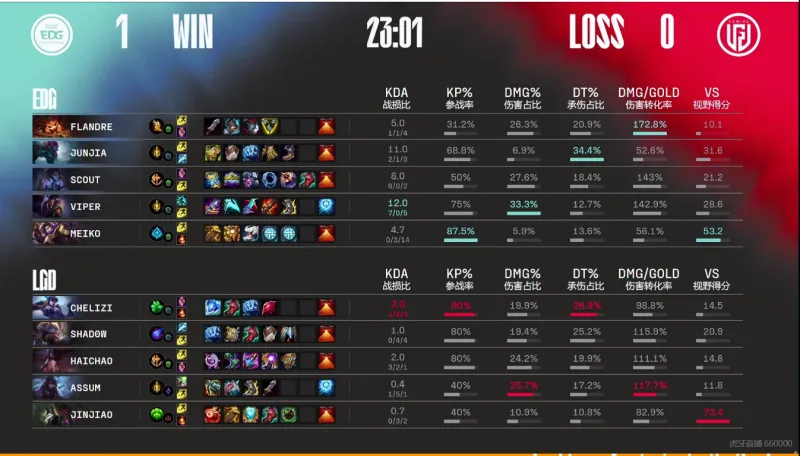 EDG选用:Flandre纳尔、Junjia巨魔、Scout塞拉斯、Viper德莱文、Meiko机器人