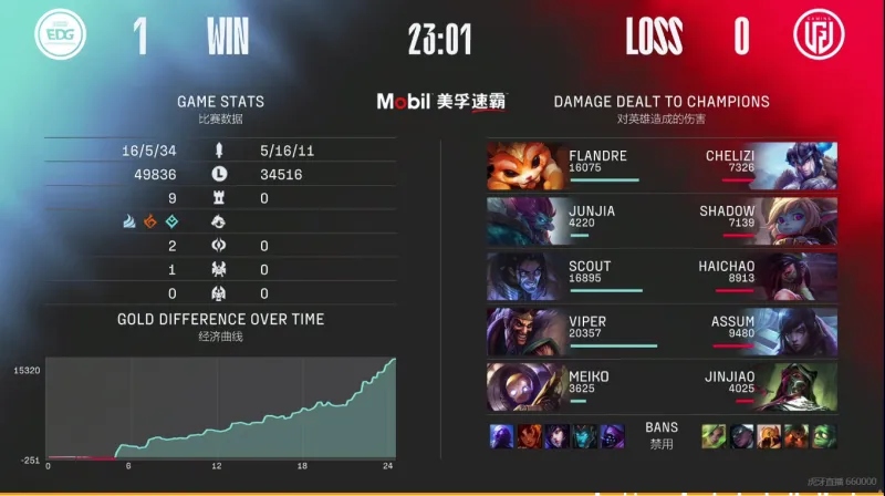 22分钟,波比先行阵亡,正面团战EDG大获全胜,一波终结比赛。
