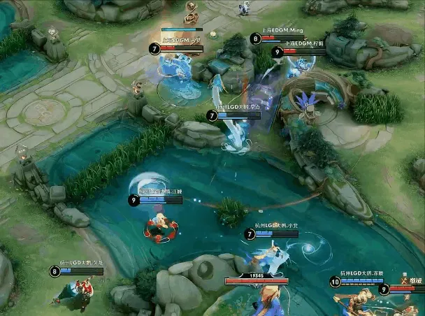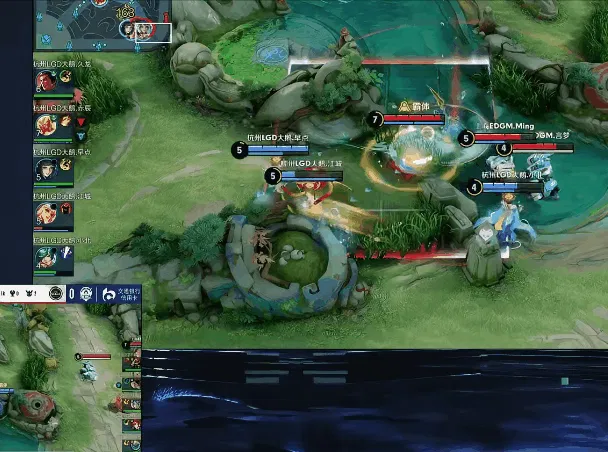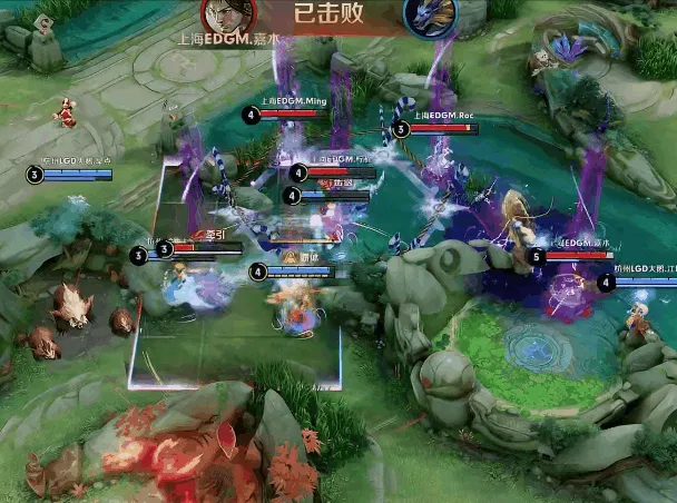 六分钟,大鹅集合反蓝,西施率先开团,吕布大招跟上,上海EDGM直接反打关羽收下双杀