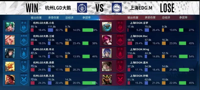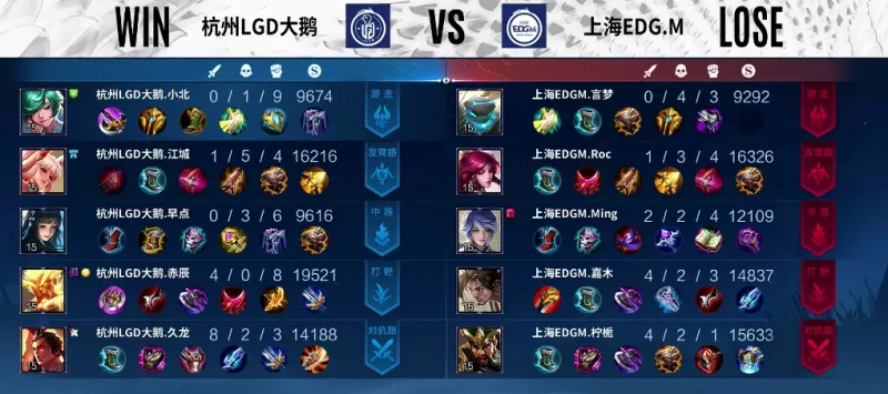 蓝色方: 杭州LGD大鹅 红色方:上海EDG.M