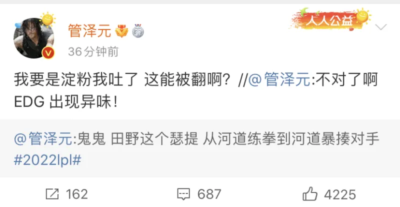 解说管泽元:“我要是淀粉我吐了 这能被翻啊?”