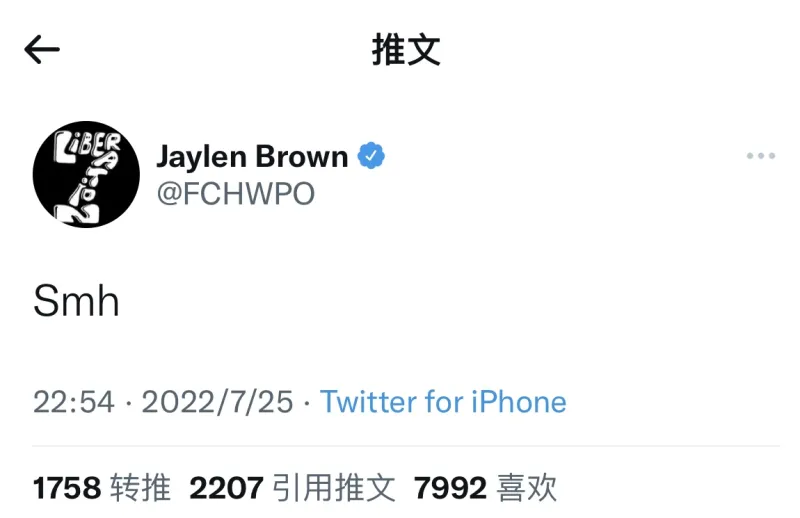 07月25日讯 今日,凯尔特人球员杰伦-布朗发推表达感想。