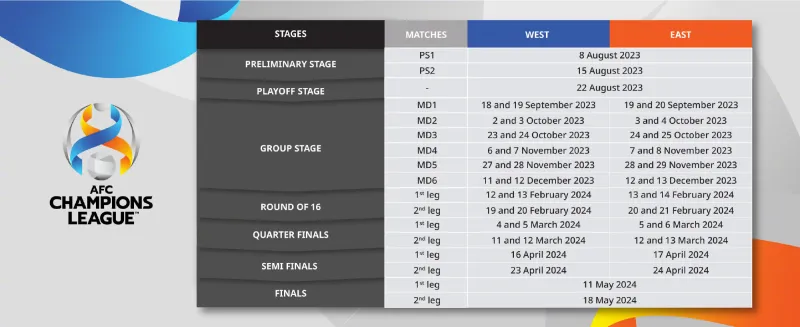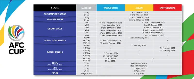 08月01日讯 亚足联官方于今日公布了2023/2024赛季亚冠联赛及亚足联杯赛程。
