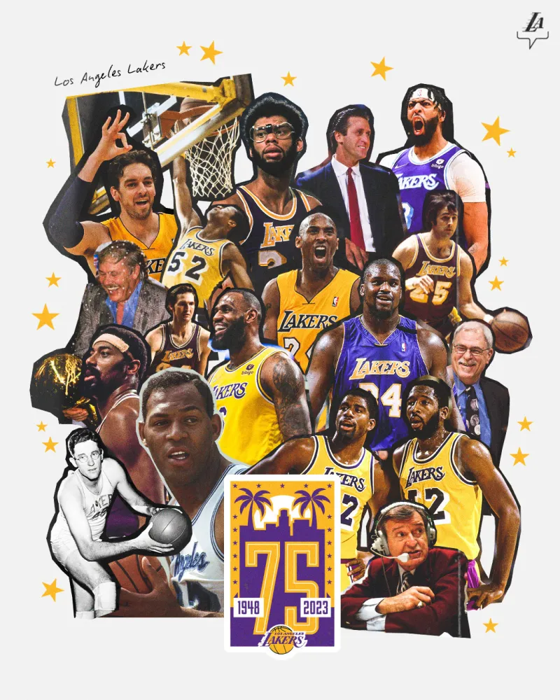 08月02日讯 湖人官方推特今日发布组图,庆祝即将在2022-23赛季迎来建队75周年赛季。