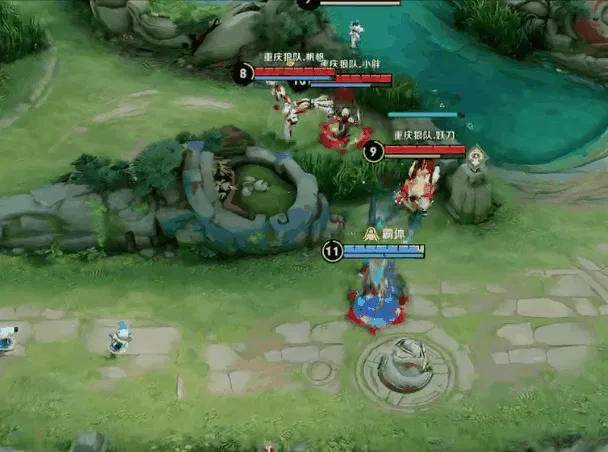 九分钟,猪八戒绕后蹲草开到嬴政,李元芳赶到,将嬴政击杀