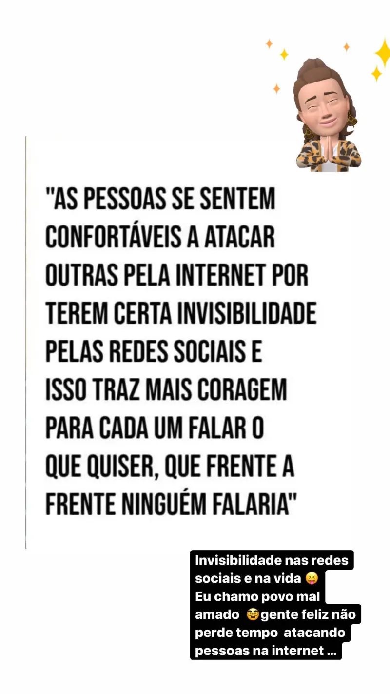 “人们很容易就会在网络上攻击别人,原因是他们在社交网络上具有一定的隐蔽性。这种隐蔽性给了他信口开河、肆意谩骂的勇气。我将这种网络施暴者称为邪恶的人,因为真正有爱的,快乐的人,是不会浪费时间去网络上攻击别人的。”