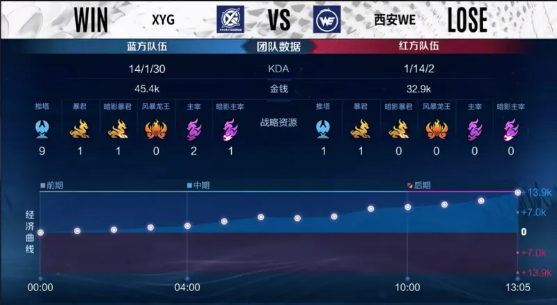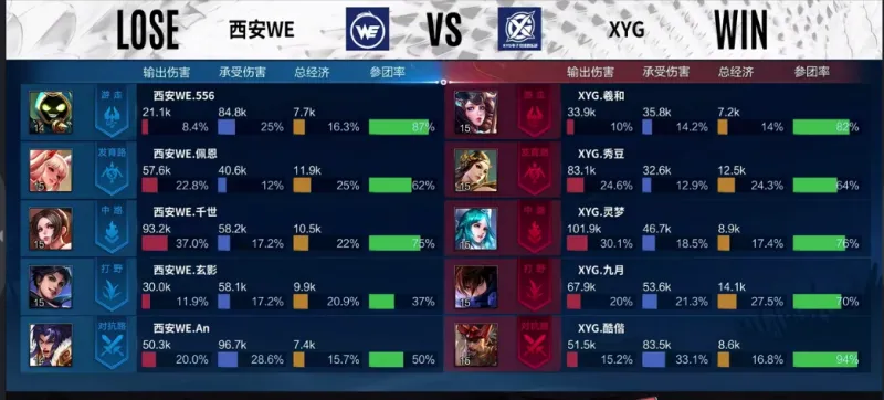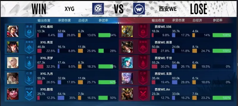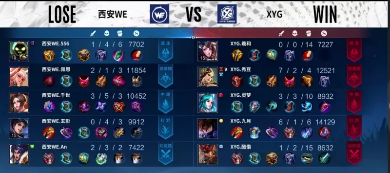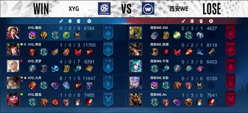 蓝色方:XYG 红色方:西安WE