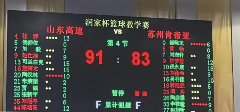 08月12日讯 今日,山东队与江苏队内部教学赛,全场比赛结束,山东队91-83江苏队。