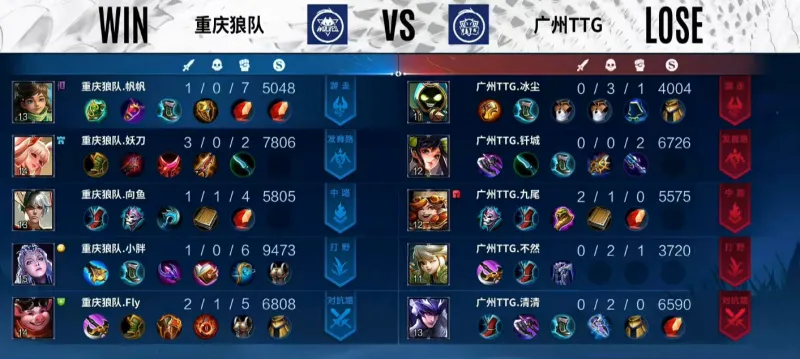 Game3:蓝色方重庆狼队 红色方广州TTG