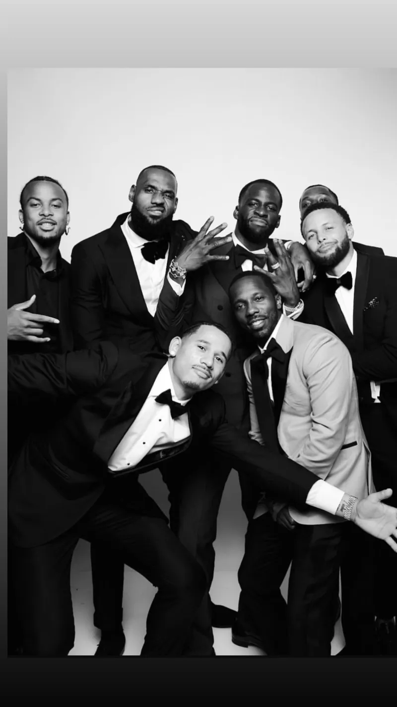 穆迪也晒出了他在婚礼上和格林、詹姆斯、波普、安德森以及斯蒂芬-库里的合影。