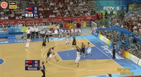 最后半分钟男篮56-55领先1分,在进攻中易建联接到孙悦突分,三分线内一步果断拔起,面对诺维茨基的飞扑他丝毫不慌,稳稳将球投进,这也直接帮助男篮拿下比赛。