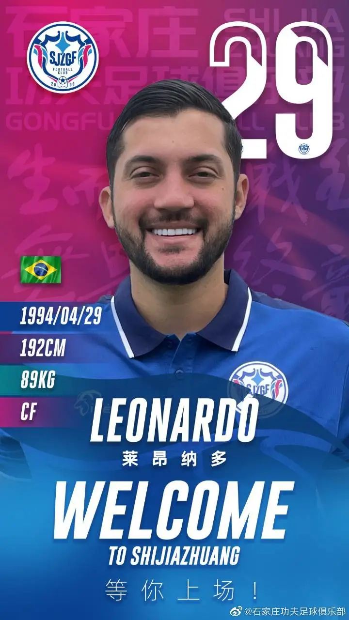 朱艺:石家庄功夫签下巴西前锋莱昂纳多,本赛季巴丁11场1球