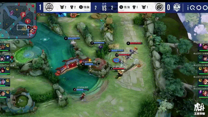 1分钟,GK抱团入侵蓝区,鹏鹏曜反到蓝buff,子阳桑启关键一拍留住敌人,花海娜可露露及时赶到击杀张飞,鹏鹏两端1又击杀小鸟,GK打出1换2小赚