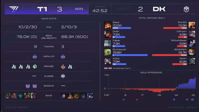 [赛后]T1 3-2 DK:黑科技阵容棋差一着,T1战胜DK挺进决赛