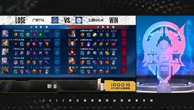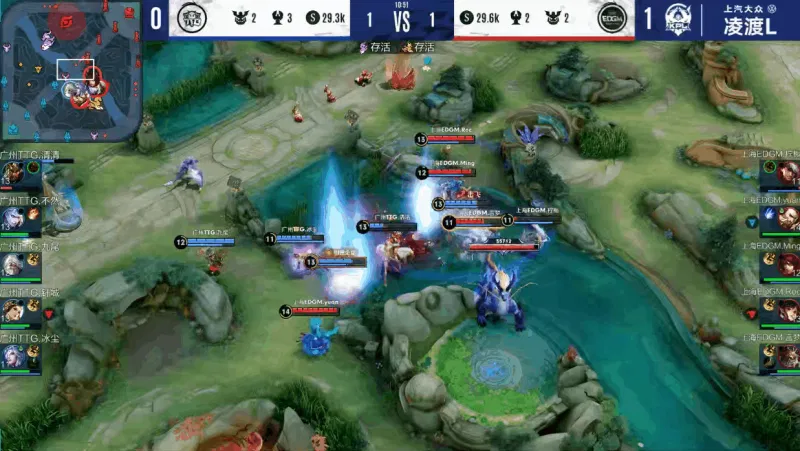 Game 2:蓝色方广州TTG,红色方上海EDGM