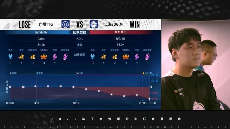 20分51秒,牛魔夏侯双前排开团,曹操切死姜子牙,正面击杀TTG三人,EDGM拿下比赛
