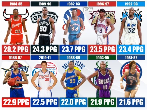 1、乔丹:28.2分(1984-85赛季)