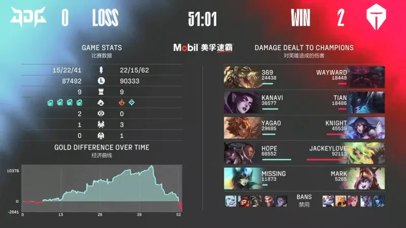 08月26日讯 在刚刚TES对阵JDG的第二局比赛中,JackeyLove泽丽打出92113的单场输出,这也刷新了LPL的AD单场最高输出记录,也是全位置第二高的单场输出。