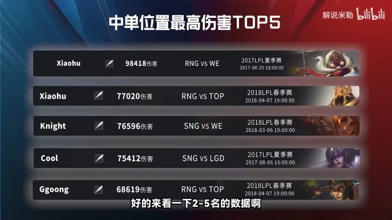 而LPL全位置最高是Xiaohu在2017年夏季赛季后赛对阵WE打出的98418点伤害。