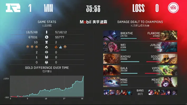 35分钟:EDG先手开小龙但是被蔚抢掉,RNG打出一换五一波结束比赛