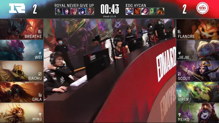 EDG选用:Flandre纳尔,Junjia波比,Scout妖姬,Viper泽丽,Meiko露露