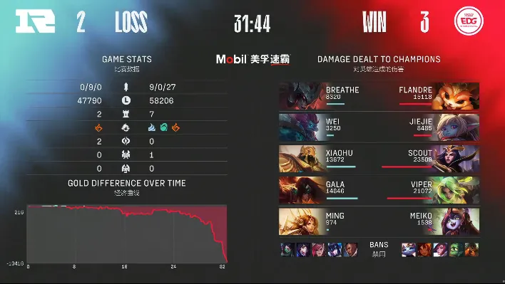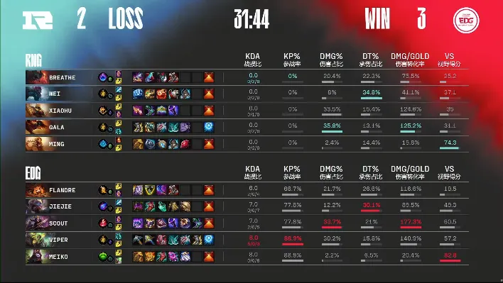 31分钟:EDG再次在野区抓到RNG并击杀对方三人,随后一波结束比赛