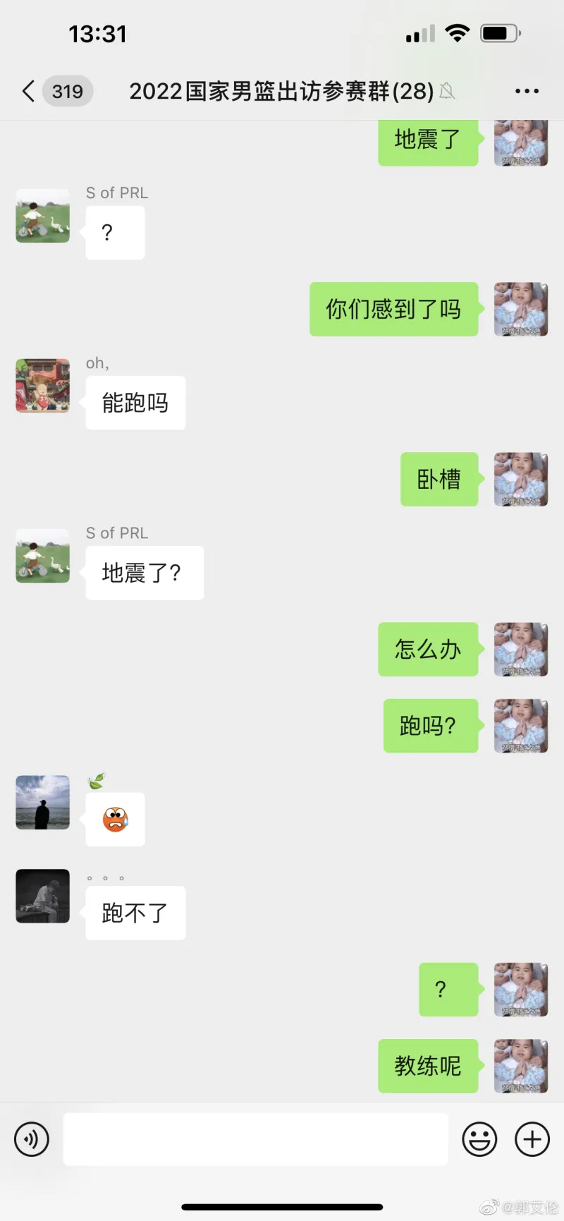 郭艾伦晒出男篮群聊里的聊天记录,并表示:“给我头都晃迷糊了,这一夏天真是非凡体验”。