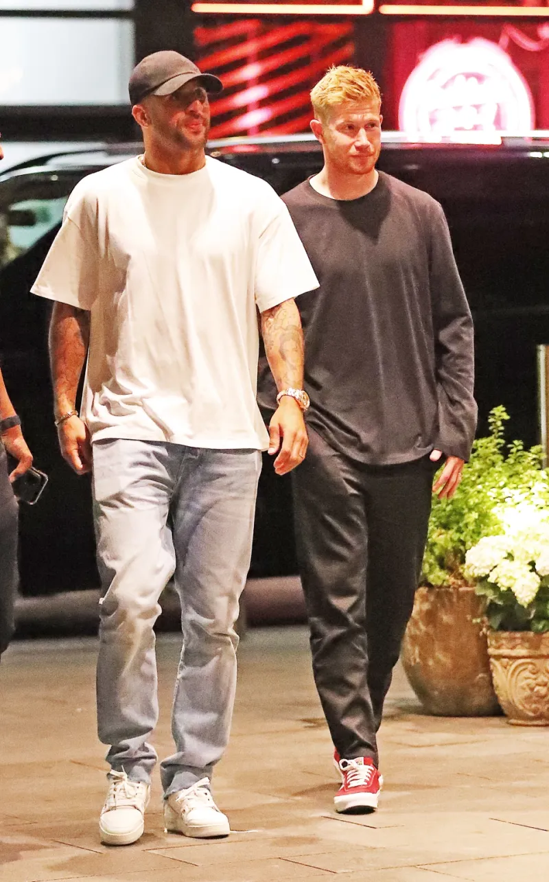 凯尔-沃克和德布劳内也来到现场。沃克当晚身穿宽松的白色T恤和灰色牛仔裤,而德布劳内则身穿深灰色长袖上衣和一双花哨的红色运动鞋,沃克的妻子以及德布劳内的妻子也参加了这次的派对活动。马赫雷斯则身穿白色T恤、灰色破洞牛仔裤,戴着一顶水桶帽。