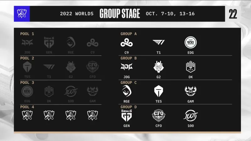 09月12日讯 2022LOL全球总决赛小组赛抽签结果如下: