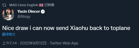 MAD中单Nisqy:好签,我已经等不及把小虎打回上路去了。