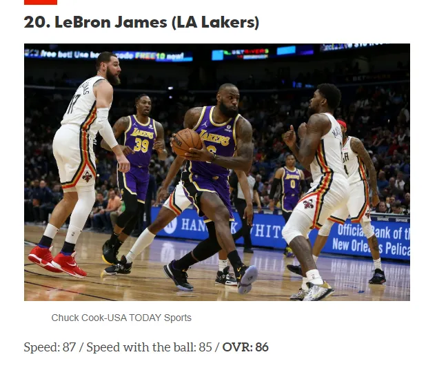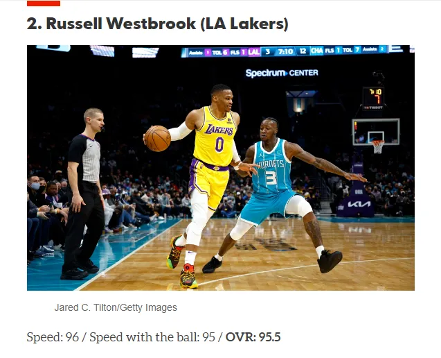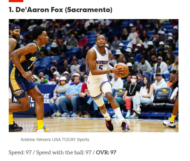 其中国王球员福克斯以97的综合评分高居第一,威少列第二,莫兰特第三,西蒙斯列第10,詹姆斯第20。