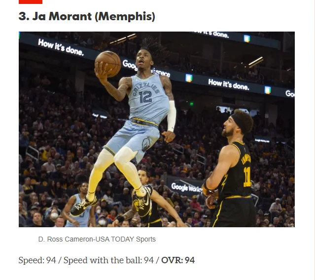09月12日讯 今日美媒HoopsHype以2K23游戏中各位球员的速度数值(纯速度+带球速度)排行为基准,列出了现役速度最快球员的排行榜。