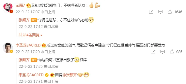 武磊和李圣龙也在微博上与张颜齐进行了互动。