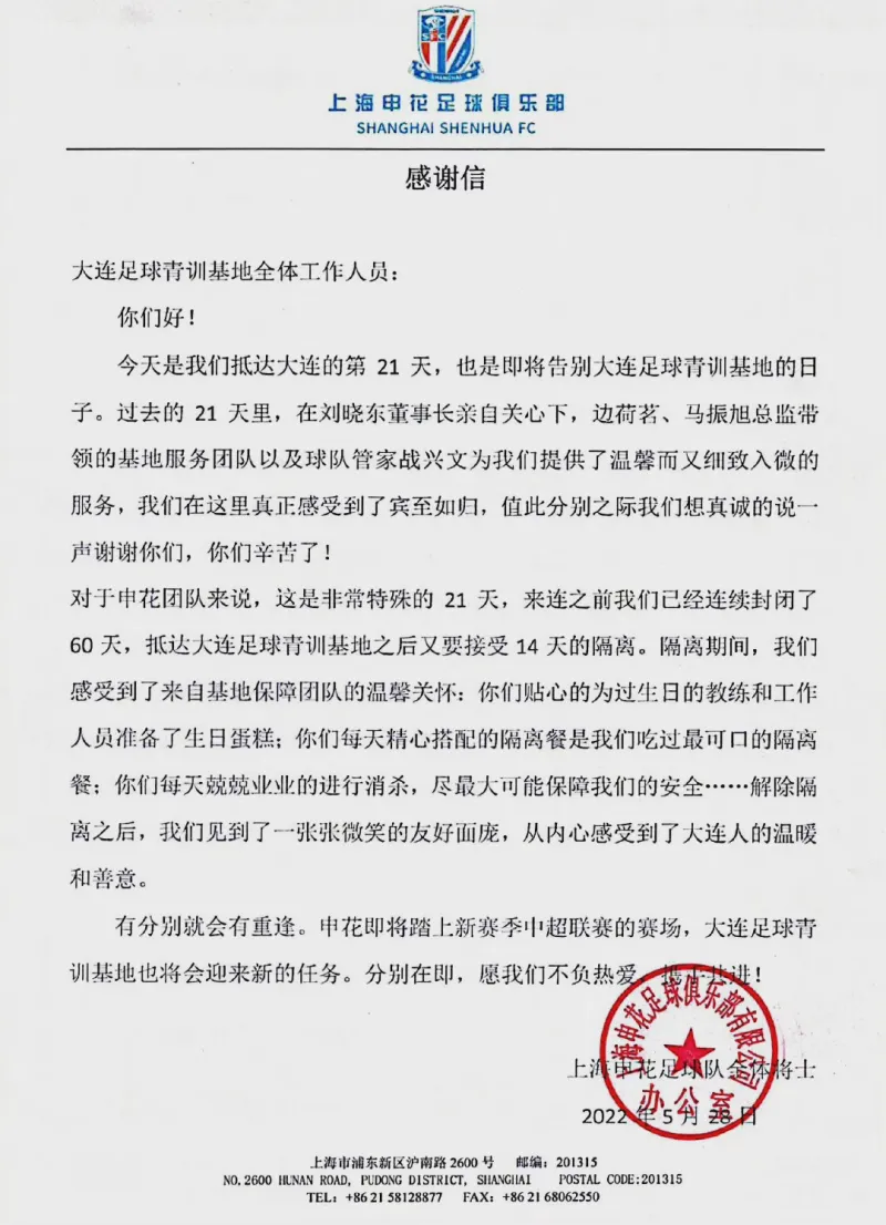 今年吴指导在赛后发布会上不止一次感谢了大连这座足球城在这个特殊时期给予申花的关爱和支持,其实这不光是朱建荣个人的内心独白,也是申花全队从上到下共同的心声。最后也祝愿谢晖指导率领的大连人队越来越好,完成今年的目标。一起加油!
