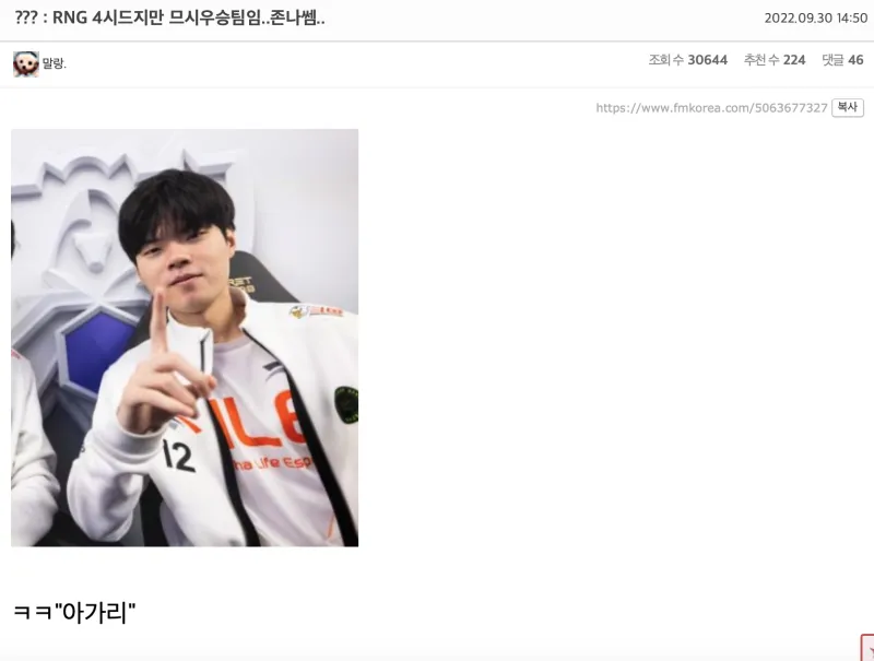 2022全球总决赛入围赛第一天DRX战胜RNG,韩国论坛网友对此展开热议(未经允许禁止转载、搬运截图):