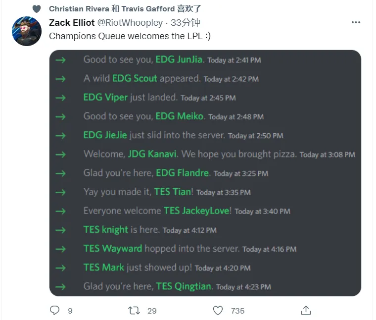 Riot Whoopley:“Champions Queue欢迎LPL的加入:)”