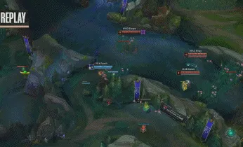 27分钟MAD带着大龙Buff上路推进,但Zeka塞拉斯力挽狂澜率领DRX完成3换4,成功阻止MAD的大龙攻势;