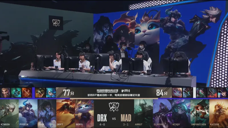 DRX选用:Kingen青钢影、Pyosik猪妹、Zeka塞拉斯、Deft希维尔、BeryL悠米