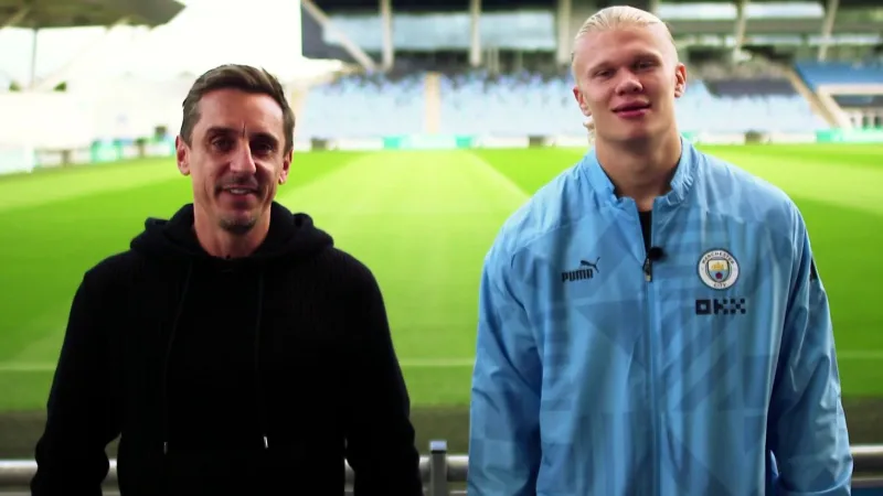 虎扑10月03日讯 作为英国天空体育的专栏作者,曼联名宿加里-内维尔昨天在天体刊发了一篇他和哈兰德之间的对谈文章,访谈的标题是——Erling Haaland with Gary Neville: 'Football-holic' Pep Guardiola, patience and his first Manchester derby