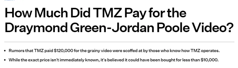 根据此前网友们的推测,TMZ拿到该录像的金额不下于5万美元,甚至有可能达到六位数以上,有网友还称TMZ花了12万买下这段录像。