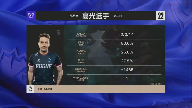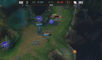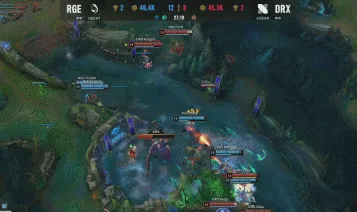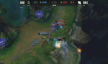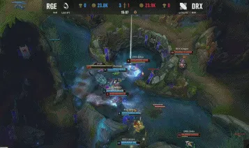 22分钟双方爆发小龙团,Comp卢锡安无压力输出率领RGE打出1换4,建立起2K经济优势;