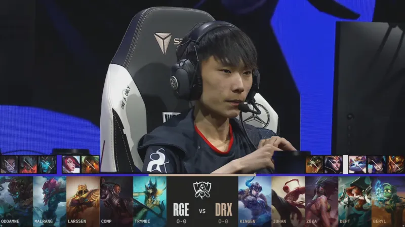 DRX选用:Kingen猪妹、Juhan盲僧、Zeka阿卡丽、Deft女枪、BeryL阿木木